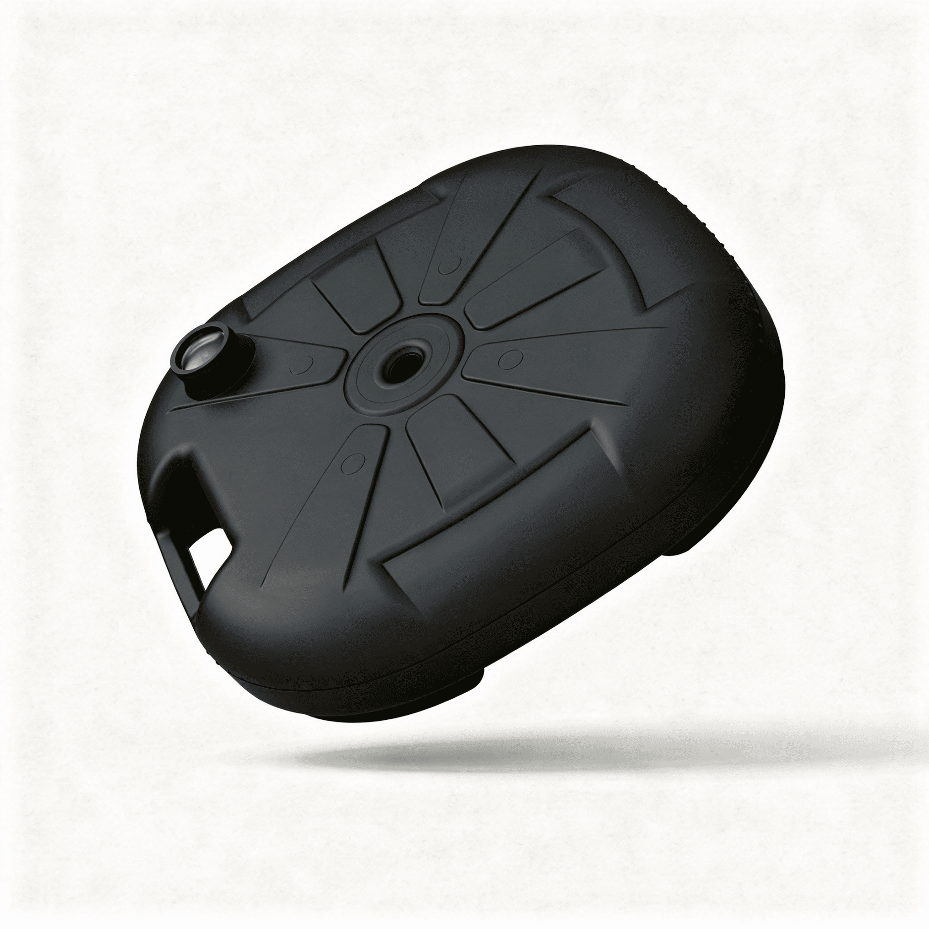 Base tinta Black em plástico polietileno, modelo maleta com alça, preenchível com areia, ideal para garantir estabilidade ao Wind Banner.