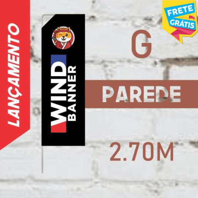 O wind banner de parede é uma solução de publicidade prática e eficiente, ideal para ambientes internos e externos onde o espaço é limitado. A diferença dele para o convencional é que não vai a base plástica e sim um suporte para pendurar na parede.